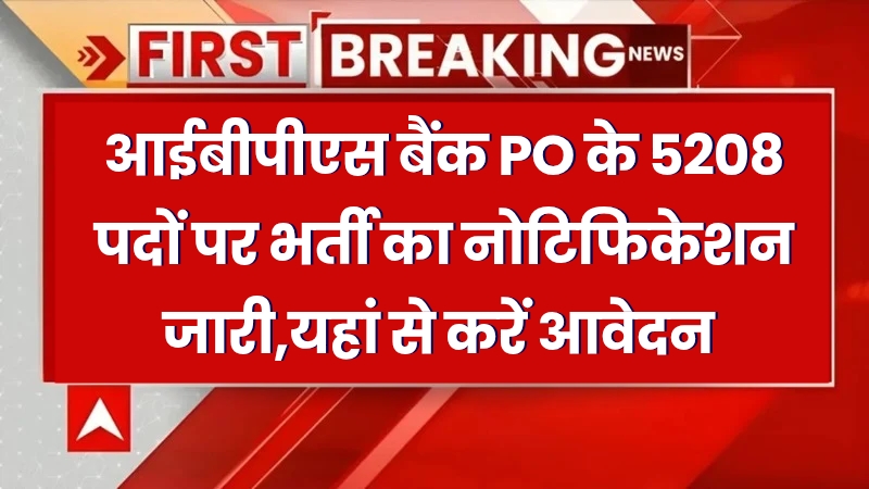 IBPS Bank PO भर्ती 2025: 5208 पदों पर आवेदन शुरू, फॉर्म भरने की अंतिम तारीख 21 जुलाई