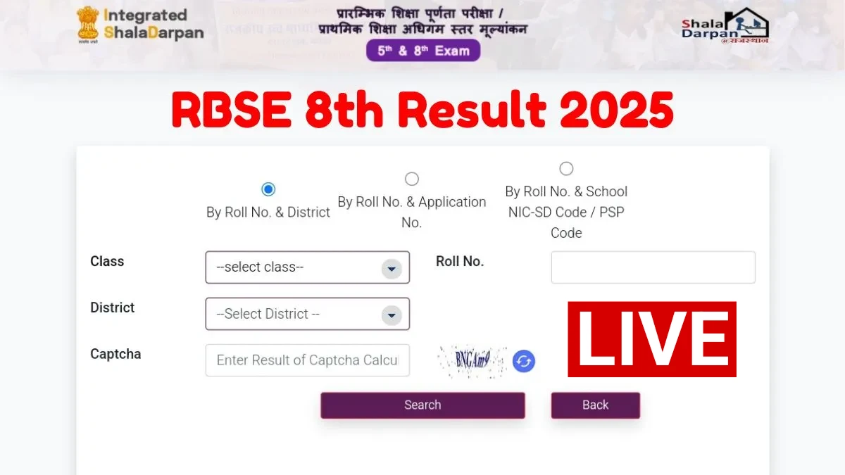 राजस्थान के शिक्षा विभाग द्वारा कक्षा 8वीं की बोर्ड परीक्षा 20 मार्च से 2 अप्रैल 2025 तक सफलतापूर्वक आयोजित की गई थी। अब लाखों छात्र बेसब्री से RBSE 8वीं रिजल्ट 2025 का इंतजार कर रहे हैं। शिक्षा विभाग की ओर से मिली जानकारी के अनुसार, राजस्थान बोर्ड कक्षा 8 का रिजल्ट 26 मई 2025 को शाम 5:00 बजे आधिकारिक वेबसाइट rajshaladarpan.nic.in पर जारी किया जाएगा।